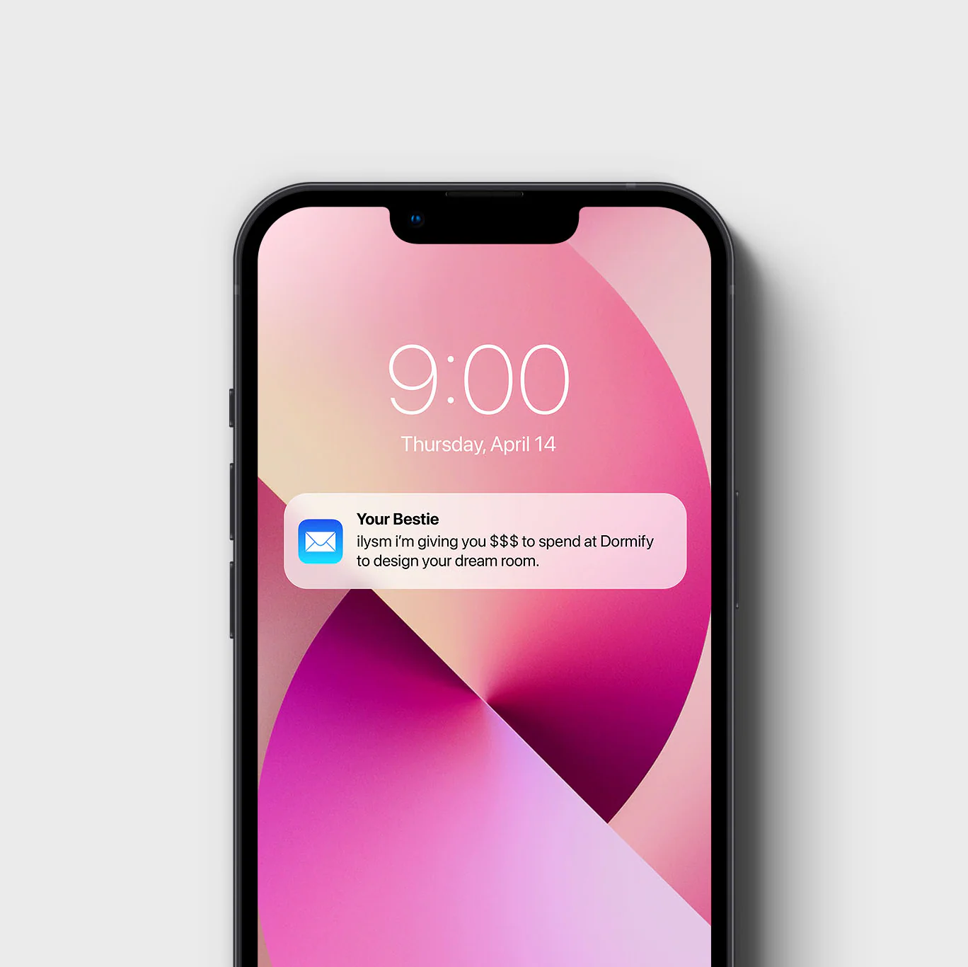Say hello to the perfect gift that's never the wrong style, size, or color, aka the Dormify Digital Gift Card. Whether you're celebrating a new graduate, looking for a holiday gift, or surprising a bestie with a room refresh, a Dormify gift card is the easiest way to help design the room of their dreams.